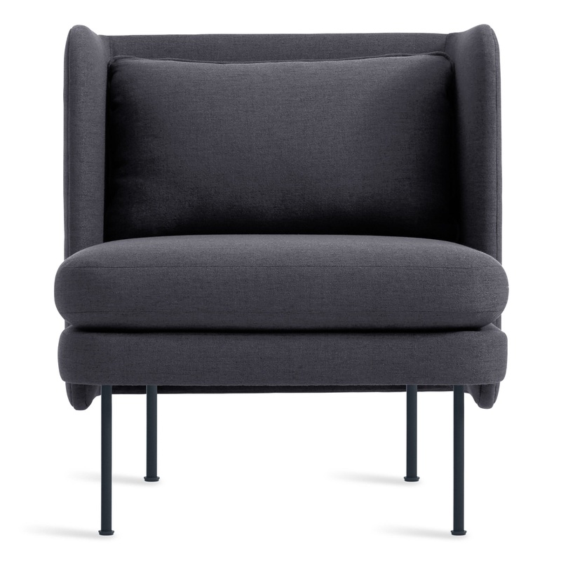With a sheltering high back that envelops a loose seat and back cushion, Bloke is equal parts refined haven and chair. A well-mannered guest in any space, Bloke works its restrained proportions to the max and flaunts a thin, rounded powder-coated steel leg. Fit for the Queen or keggers, Bloke is a sophisticate that knows how to have a lot of fun.