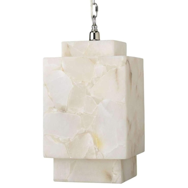 This unique alabaster pendant has strong cubic lines that float in it’s alabaster white glow.