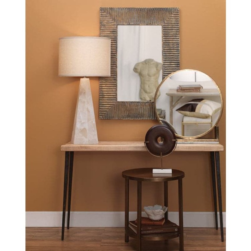 The Alabaster Borealis Hexagon Table Lamp has the cool luminosity of an Arctic evening. With its organic cut pieces, this hand-made lamp is very special. The shade, made with our Stone Linen fabric, is a perfect match.