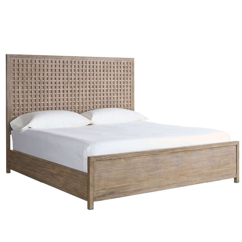 The Boulder Panel Bed makes a striking statement with its architectural latticework headboard, rendered in a warm Boulder medium-brown finish. This bed blends natural texture with clean, modern lines, creating a focal point that is both sophisticated and inviting. The solid panel footboard and side rails complement the intricate headboard, offering a harmonious balance of design and comfort.