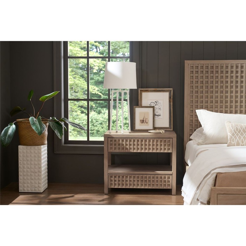 The Boulder Nightstand showcases the collection’s architectural inspiration with its distinct latticework detailing, finished in a warm Boulder medium-brown. This piece offers both open and drawer storage, combining functionality with a touch of sophisticated design. Its unique texture and clean lines bring a refined, yet natural aesthetic to your bedside.