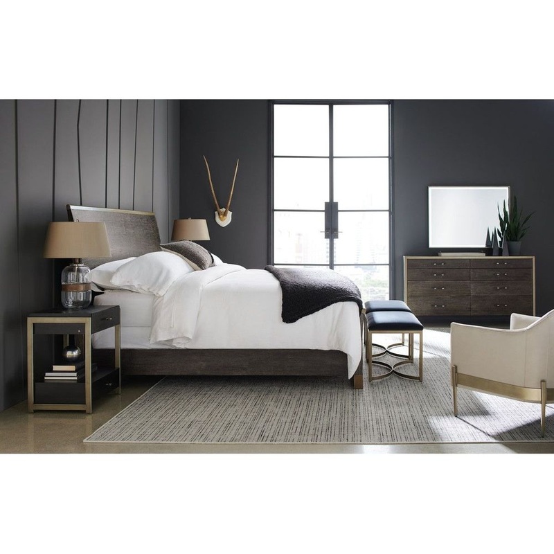 Classic meets charismatic in this modern barrel chair. Expertly upholstered in a supple taupe leather, its traditional form has been updated for today’s interiors. Generously scaled, it features a stunning touch of Smoked Stainless that outlines its base and thin, modern tapered legs. This luminous metal band and intriguing mix of materials are a whimsical play on a classic cask design. Place this modern marvel anywhere you want a bit of WOW or put two together by the fireplace for a modern conversation area.
