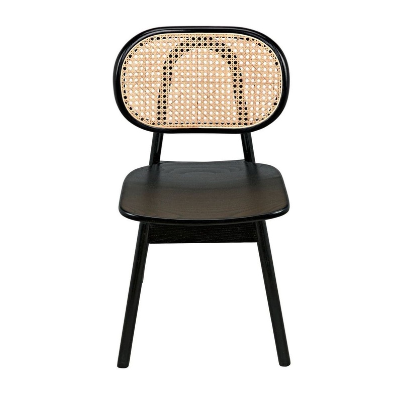 The Brahms chair is suggestive of early 20th Century modernism and features our Charcoal Black finish that highlights the woods natural grain. Racetrack back with natural caning.