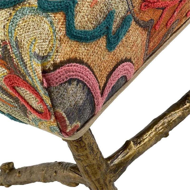 An ottoman with a branch-style base in an Antique Bronze finish shown in 9006 fabric.