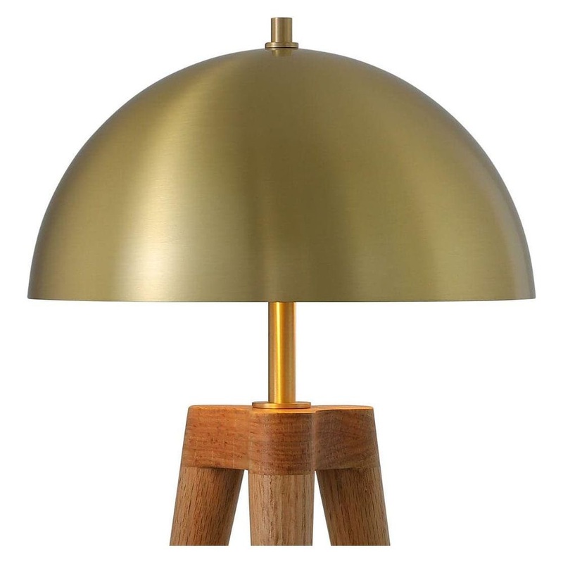 - The Brass Dome Table Lamp with Wooden Tripod Base features a downward facing design that adds a touch of elegance to any room.