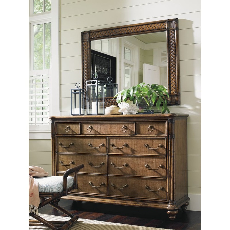 Marketing Copy: At Tommy Bahama Home, we believe the cure for today’s hectic pace lies in creating a lifestyle at home that evokes the essence of relaxed destination living. Our refined home furnishings feature unique natural materials, rich hand finishes, custom hardware and inviting upholstered seating in fresh island colors. Bali Hai infuses the beauty of British West Indies styling with eclectic Polynesian influences, showcasing elements like woven raffia, rattan, crushed bamboo, penn shell inlays and leather-wrapped bamboo. Crafted in Maple and Cherry, the Caribbean Sunset finish has a warm brown patina with a soft luster, highlighted by custom hardware in an aged brass finish.Your home is both a sanctuary and a canvas for creative self-expression. We are passionate about designing home furnishings that captivate and inspire, while creating a restful retreat. Bali Hai was created for thosbrate long weekends, quiet walks on the beach and vacations we wish would never end. Welcome home.