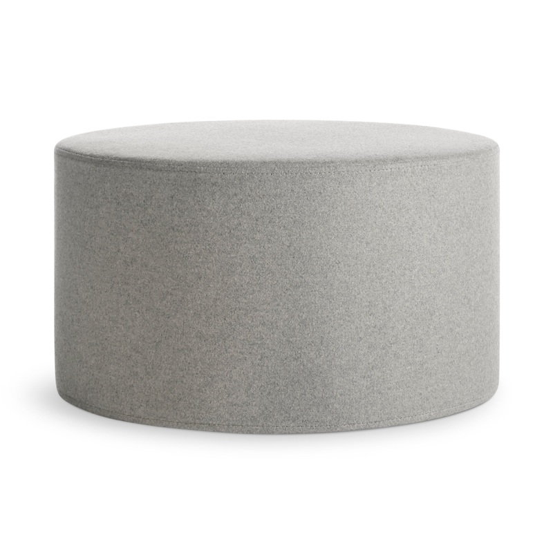 Playful geometry gets to work. Use as side table, foot stool, flexible seating, or an impromptu stage. Soft felted wool blend upholstery is available in boatloads of colors. Top this large round ottoman off with the powder-coated aluminum Bumper Large Ottoman Tray for a more stable and spill-friendly surface.