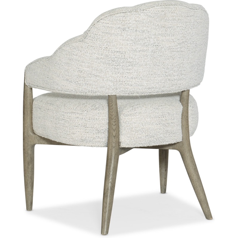 Inspired by the breathtaking three-tiered Linville Falls, the most famous waterfall in the Blue Ridge Mountains, the Bynum Bluff Accent Chair has a channeled back that creates a scalloped shape on the upholstered arms. The plush seat and back are upholstered in the neutral Merino Cotton, while the wood frame is finished in the soft smoked gray Mink color. Capturing the essence of natures organic color palette and the aura of a rustic mountain cottage, Hooker Furniture introduces the Linville Falls collection. The whole home collection is designed for younger consumers looking for casual and contemporary furniture. Characterized by its rustic, weathered finish and clean lines paired with organic grain patterns, Linville Falls is constructed with split oak solids and veneers and has an overall organic aesthetic. It is featured in a soft Smoked Gray finish mixed with a Charred Black finish that is achieved through Shou Sugi Ban, a Japanese technique that creates an elegant burnt wood look. Its moderate scaling and fresh silhouettes offer a refreshing juxtaposition mixing old with new.