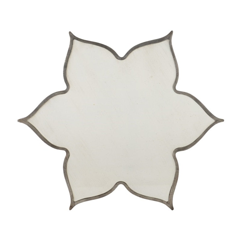 Like a Hollywood starlet, this exquisite flower-shaped cocktail table shimmering in a silver finish with undertones of gold and champagne will add beauty and drama to your room. The lovely top is finished in Meringue, a reverse painted glass in a creamy white finish. On casters for easy moving. Channeling jet setting socialites from the golden age of Hollywood as its muse, Hooker Furniture is set to launches a major expansion to its popular Sanctuary collection. The bedroom, dining room, occasional and home office pieces are grouped into three unique new personas, each of which embody the influences of the iconic starlets whom left impressions of glamour, charm and class on American pop culture. From bold and dramatic to soft and romantic to a statement-making eclectic lifestyle, the three personas Collette, Anastasie and Diamant effortlessly bring to life a well-traveled socialite who has curated a collection of home furnishings in her metropolitan home that tell the story of her travels across the globe. Offering a more metropolitan style, Diamant has an eclectic attitude. Anchored by a silver finish with rich undertones of gold and champagne, the group is complemented by a bold, black accent finish, mirrored details, champagne metal finishes and a fresh white eglomise process, accented with silver tipping. Several pieces also include reverse hand painted glass that resemble the look of marble.