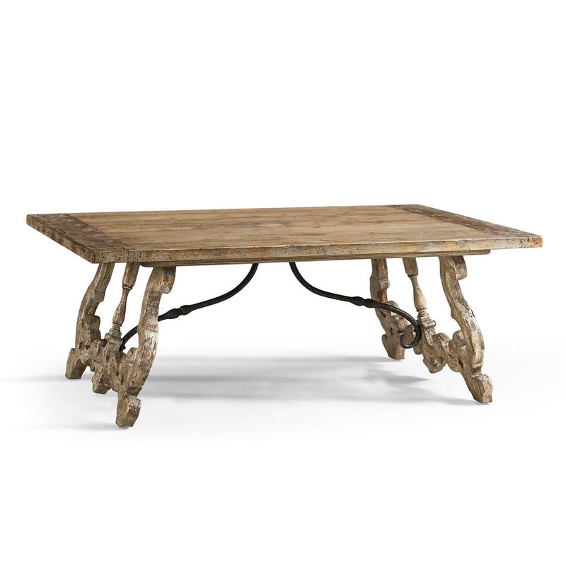 The Caldera Curved-Base Cocktail Table brings a refined blend of classic charm and functionality to your living space. Featuring a distinctive Spanish-style silhouette and masterful craftsmanship, this table is constructed from greyed oak wood with painted accents offering a rustic yet elegant antique appeal.