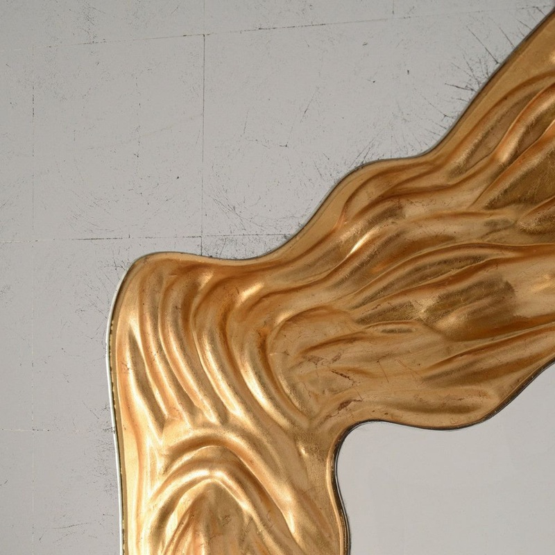 Description: A deep recessed mirror with an organic shape is sitting inside a square of mirror of light eglimise’. The center mirror is clear. This mirror is designed for portrait or landscape orientation.