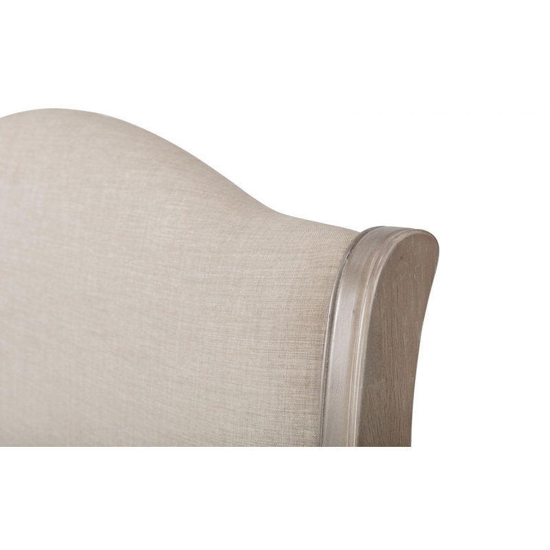 Inspired from a classic French design, the Camille bed excels in elegance. Featuring traditional ornate details, from the curved and arched headboard, to a scalloped footboard with cabriole legs, this bed is the definition of a timeless design. The frame is finished in a limed oak effect, with a soft upholstered headboard covered in an oatmeal linen fabric. The Camille Bed is available in 135cm Double and 150cm King sizes.