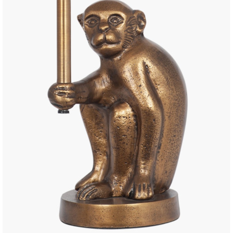 Quirky and fun! Add an element of kitsch to your side table with this fun metal monkey table lamp. Finished in a classic antique brass it would look great with either a luxurious velvet shade or neutral linen shade. Also available in a shiny nickel finish. Recommended lampshade size: 25cm diameter