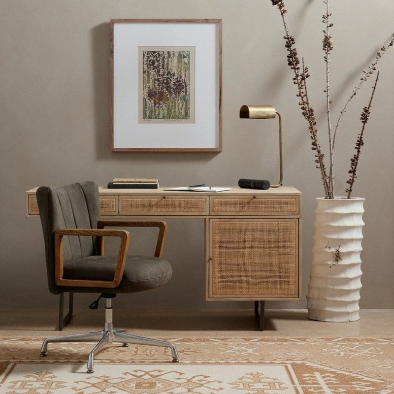Add some mid-century-inspired style to your living room with this stunning cabinet! Made from mango wood and cane, this piece exudes organic charm. The natural mango frame contrasts with a cane weave create a fresh and light look, while the angular charcoal finished iron legs add a touch of texture and tone. This cabinet is sturdy and durable, and it features a cord management hole on the interior side, so you can keep your cords organized and out of sight. Whether you need extra storage or just want to add a touch of mid-century style to your home, this cabinet is the perfect choice. Get yours today!