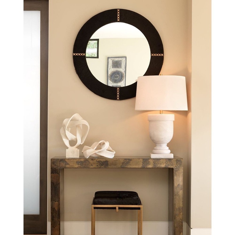Traditional glamour is at it’s best in the Carnegie Table Lamp! The unique veining of white faux alabaster swirls around a traditional urn shape, accented with brass touches including two brass sockets for glamorous light. A white linen drum shade accents crisp highlights in the lamp’s coloring, adding to the striking, monochromatic piece.