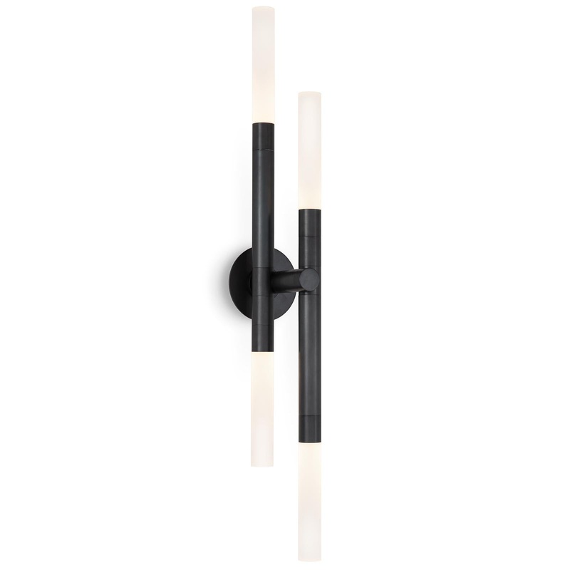 By design, the Cass Sconce is a sculptural piece of art for the wall and has the added benefit that the sconce arms can be rotated to the homeowners taste whether intersecting, perfectly parallel or displayed up and down. Larger in scale, the Cass Sconce can become a focal point of the room while the frosted acrylic bulb covers add the perfect amount of diffused light.