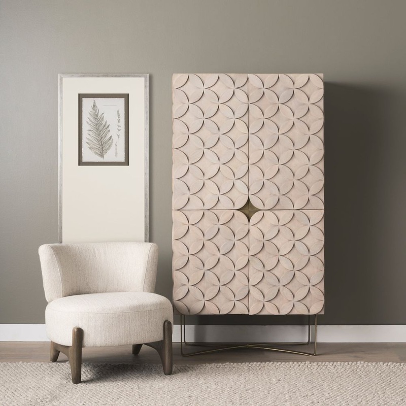 Description: A real showstopper of a storage cabinet that will suit the luxe and contemporary aesthetic. This cabinet is glamorous with a star-in-circle, raised pattern and durably crafted out of golden mango wood