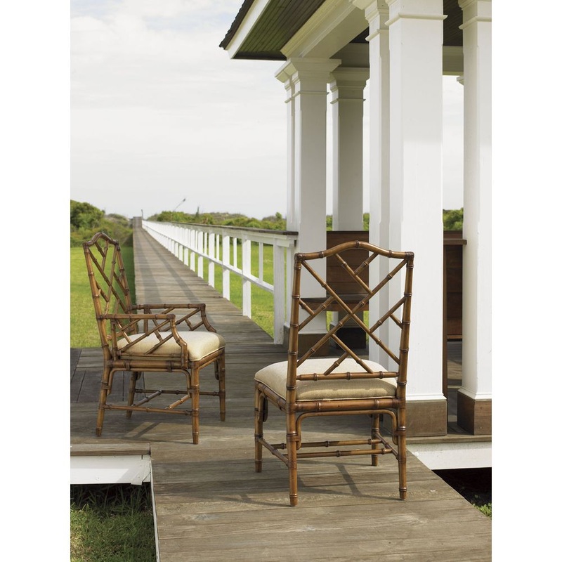 Marketing Copy: The refined Caribbean styling of Island Estate is infused with a rich blending of natural materials like woven Abaca and Lampakanai, Coco shell, Penn shell, leather-wrapped bamboo, and woven rattan. The rich Plantation finish blends effortlessly with the Noche Black, Cilantro Green, and Sangria Red accent finishes, while signature island fabrics draw the outdoors in. Capture the essence of sophisticated island living with Island Estate from Tommy Bahama Home – a relaxed approach to the finer things in life.