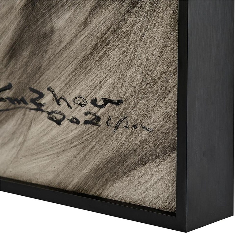 Charging Spirit by Liu Mengzhou is an impressive oil painting on canvas that celebrates one of natures most majestic creatures. Shown in grayscale, the painting depicts an intricately detailed horse in a full sprint. The piece is held within a black aluminum gallery frame and may only be displayed from a vertical orientation.