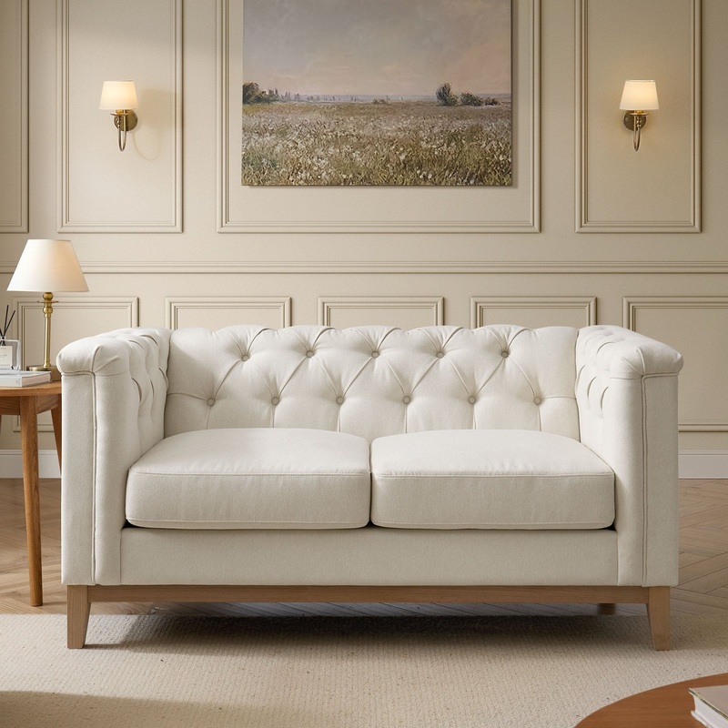 Unwind in style with the linen look 2 seater sofa in cream from the Chesterfield collection.
