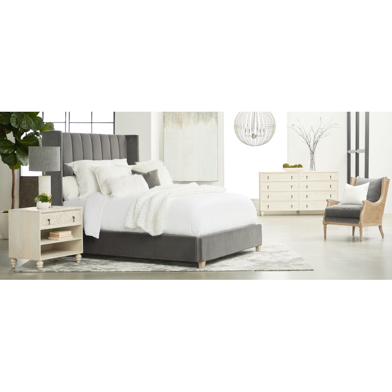This timeless club chair will elevate your living space with its transitional style and neutral tones. The chair back and sides are constructed with a classic rattan cane material for a traditional and ageless look. The seat and back cushions are removable and upholstered with a rich, dark gray velvet that nicely contrasts the natural gray tones of the wood and cane. The wingback sides seamlessly curve into armrests with scroll detailing at the edge of the arms. The front legs are carved with fine detailing that gives this accent chair a tinge of old-world charm. It will be the perfect finishing touch to many living room styles.