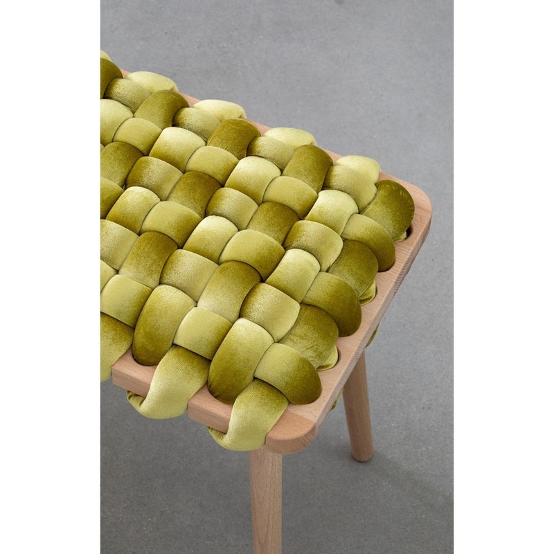 Description: Expertly crafted with a blend of fine velvet fabric and natural Beechwood, the hand-woven stool enhances any entryway or living space with its elegant and playful design. This lasting piece combines beauty and functionality, creating a stunning addition to your home.