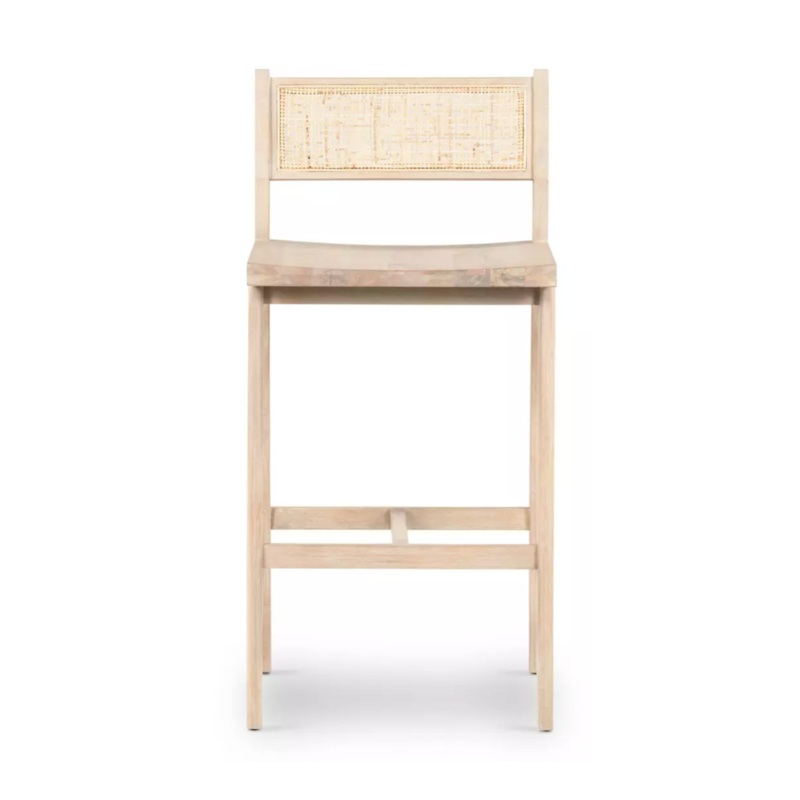 Elevate your dining experience with the Clarita Bar + Counter Stool. Its clean lines and monochromatic color scheme exude sophistication and timelessness. The white-washed mango frame and natural cane backrest add texture and simplicity. Enjoy understated luxury at every meal.