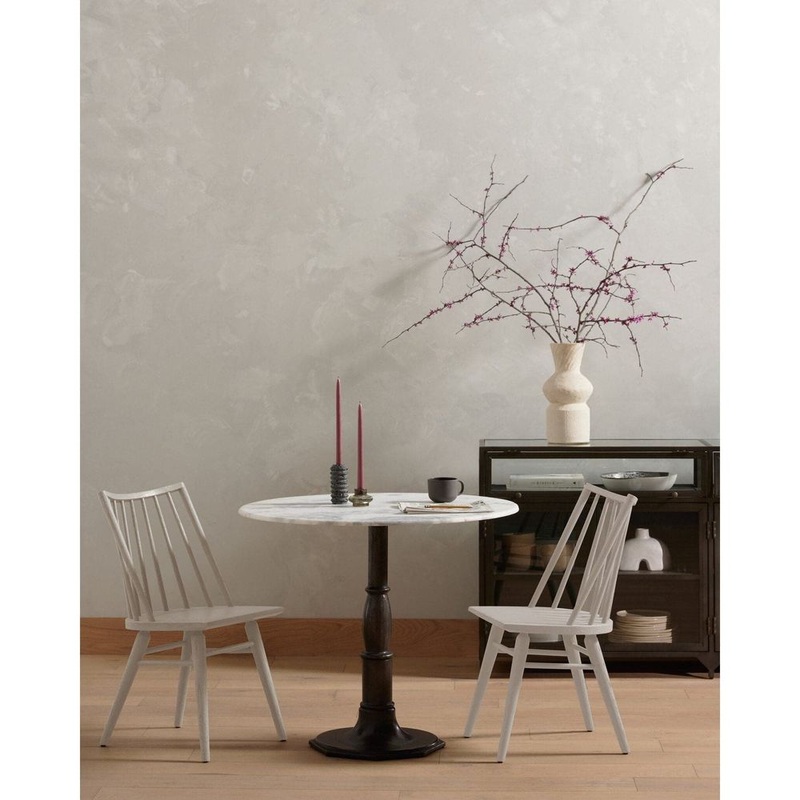 - Description: Try a cleaner, more contemporary take on the traditional Windsor. Tall oak seating is wire-brushed to bring out natural cathedral graining, then stained to a beautifully neutral off-white.