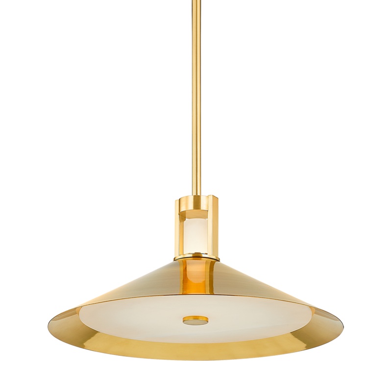 A luxurious basic for modern homes, Clermont features a sharply tapered conical shade and energy-efficient LED technology. When illuminated, the light washes over both the flat alabaster diffuser as well as the clerestory, flooding your living space with a soft glow. Available in two sizes and two finishes, Aged Brass and Distressed Bronze.