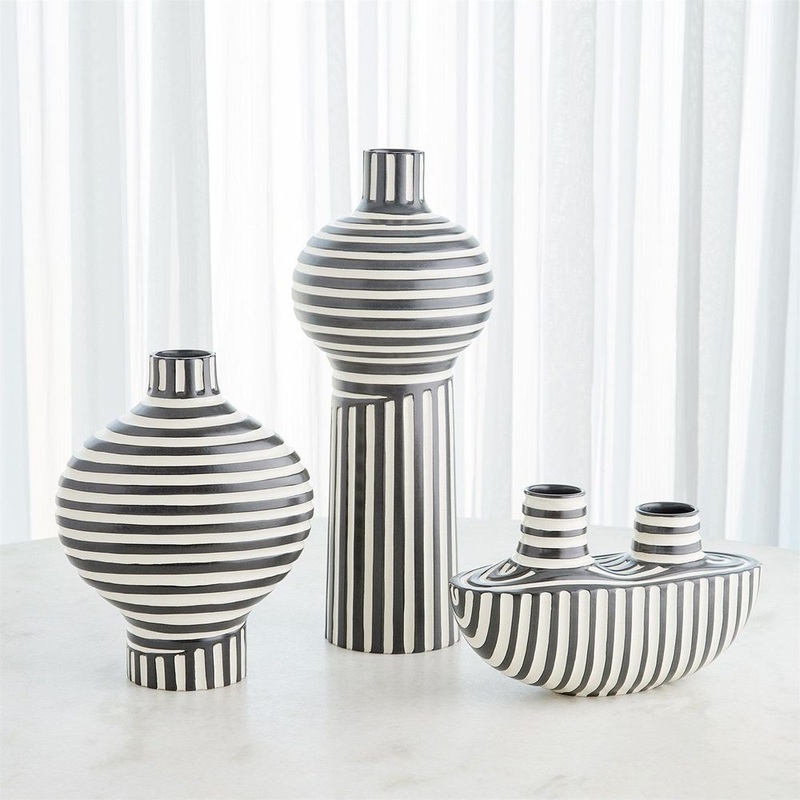 Description: The Colbert Vases collection by Lemieux Et Cie features bold, graphic decorative stripes hand-painted by skilled artisans. Each vase boasts striking linear design patterns that add a contemporary edge to the classic ceramic form. The vibrant, contrasting colors create an eye-catching visual appeal, making these vases perfect statement pieces for any modern interior. Every vase in this collection is a unique work of art, seamlessly blending traditional craftsmanship with innovative design. Perfect for showcasing floral arrangements or as standalone decorative elements, these vases bring a dynamic touch of creativity to any space.