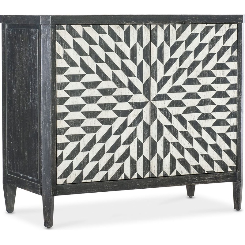 Description: The Lancaster Hall Chest offers the classic and always-stylish black & white combination and timeless painted starburst pattern on the door fronts. Crafted of Maple Veneers, the two doors have soft-close hinges and magnetic door catches with one adjustable shelf behind the doors.