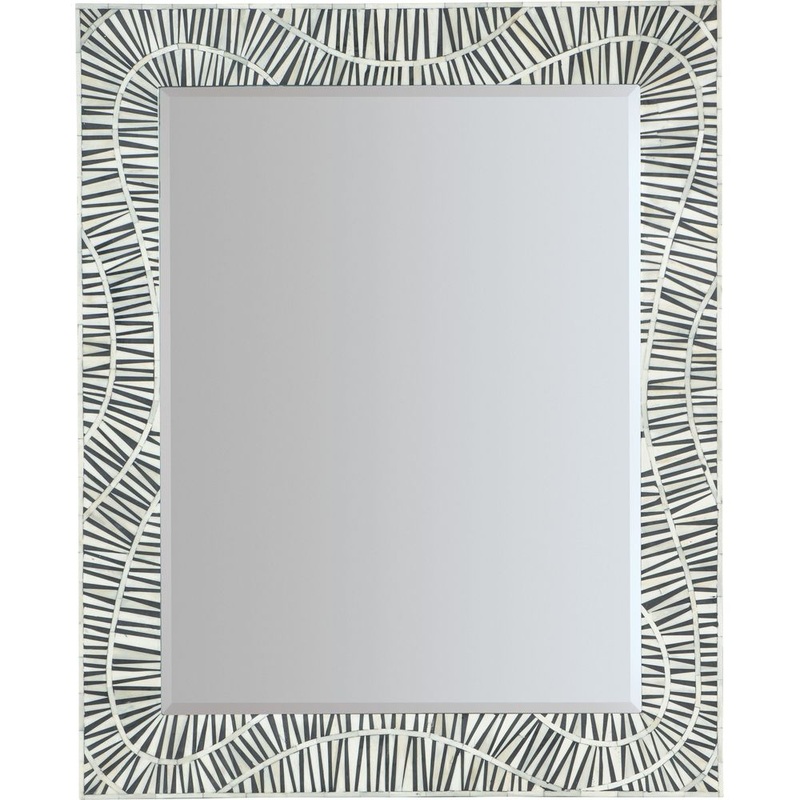 Description: With a tribal and primitive vibe, the Tiger Tooth Beveled Vertical Mirror has a black and white design and is crafted of Mango Solids, Bone and glass. The rectangle shape allows the mirror to be hung vertically or horizontally.
