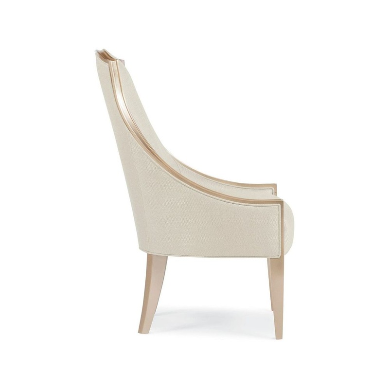 The Adela Side Chair is the perfect accompaniment to formal dining spaces. This chair easily pairs with dark or light woods or contemporary glass tables because of its statuesque lines, suave metallic Blush Taupe frame and cream tweed boucle fabric. Gracefully curved and plush for comfort, this chair beckons you to take a seat.