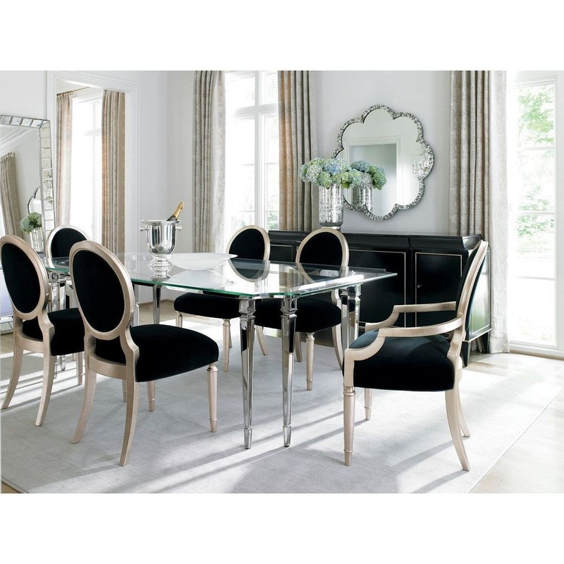 The Chit-Chat arm and side chairs are an elegant dining companion. Nicely scaled with an oval-back, this chair will always be a classic. We eliminated the expected carvings to give this chair a fresher attitude for today’s interiors. Finished in a warm, Taupe Silver Leaf, these chairs are upholstered in black velvet. Is there anything more chic? We think not!