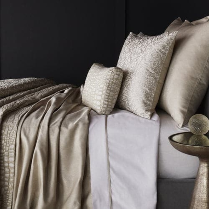 Inspired by luxurious leather handbags. This dimensional jacquard is beautiful and bold, despite coordinating with a variety of bedding collections.