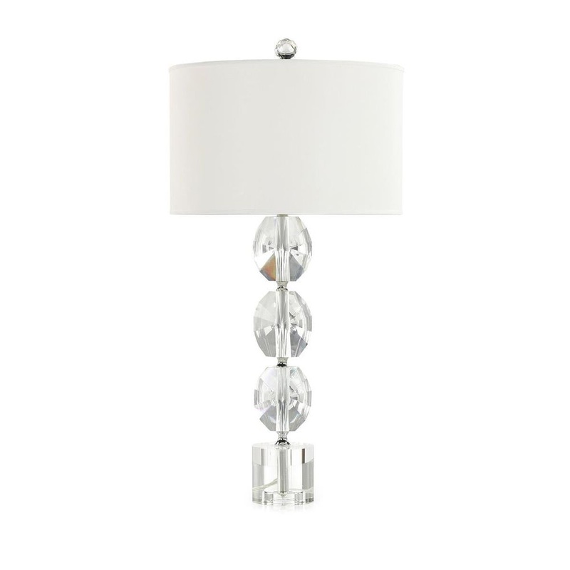 The Glass Beads Table Lamp showcases seductive curvature and instills an interior space with an aura of elegance. This stylish piece is crafted from large beads of clear crystal, arranged neatly in a stack of three. The piece sits atop a matching crystal base and displays a ball finial at the top. Nickel hardware complements the transparent tones to complete the look.