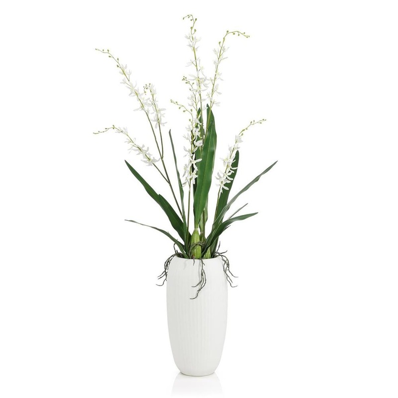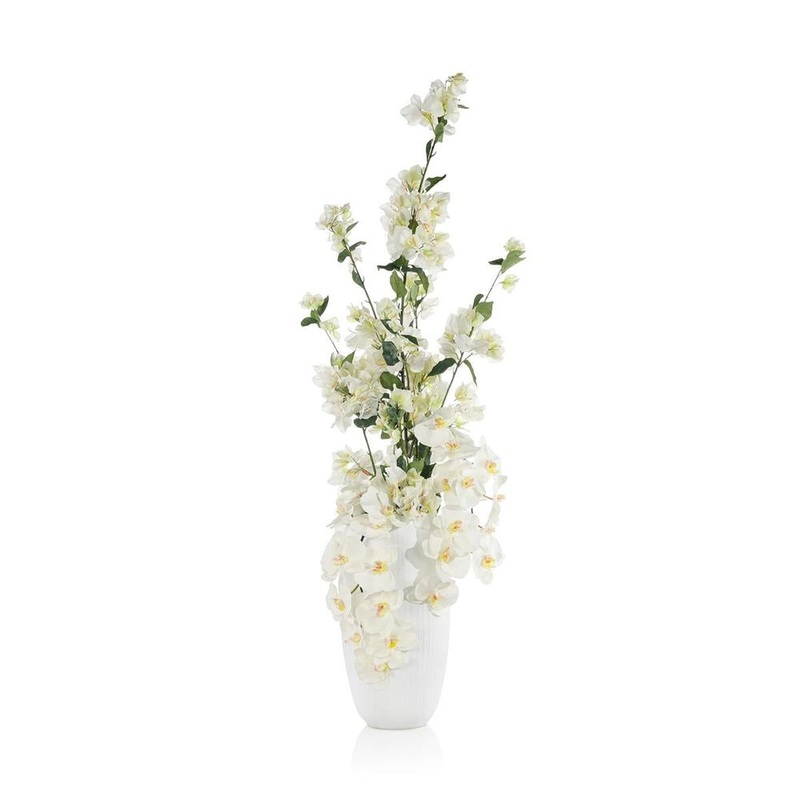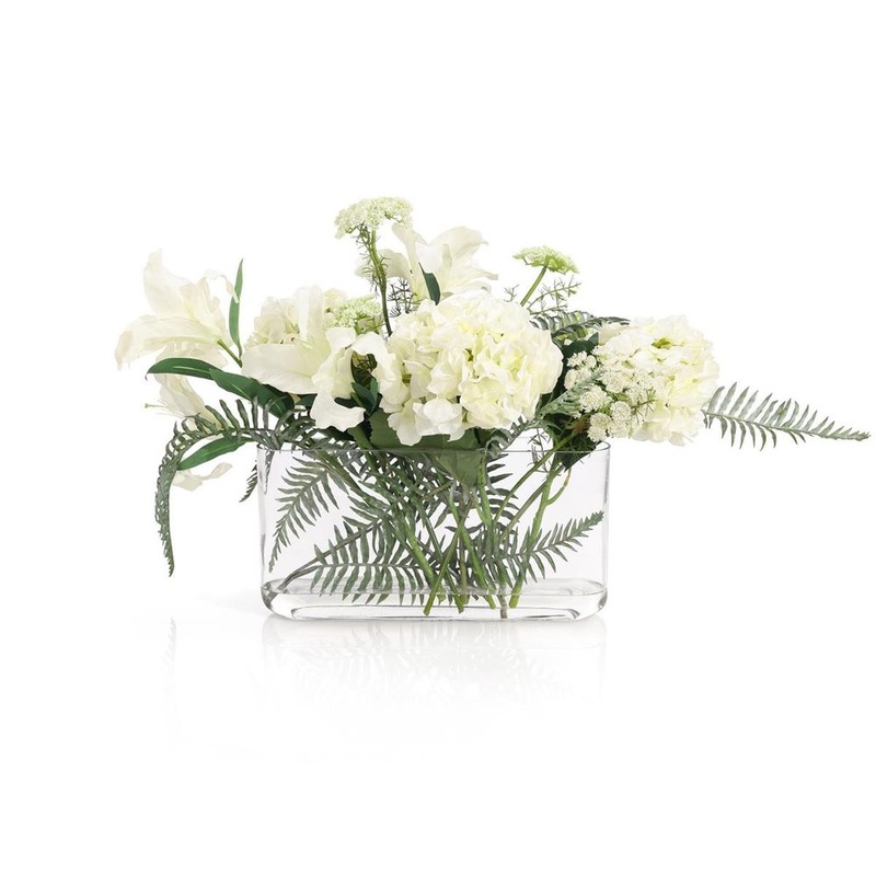 - Material: Real-touch calla lilies & phalaenopsis orchids, clear glass vase with faux water