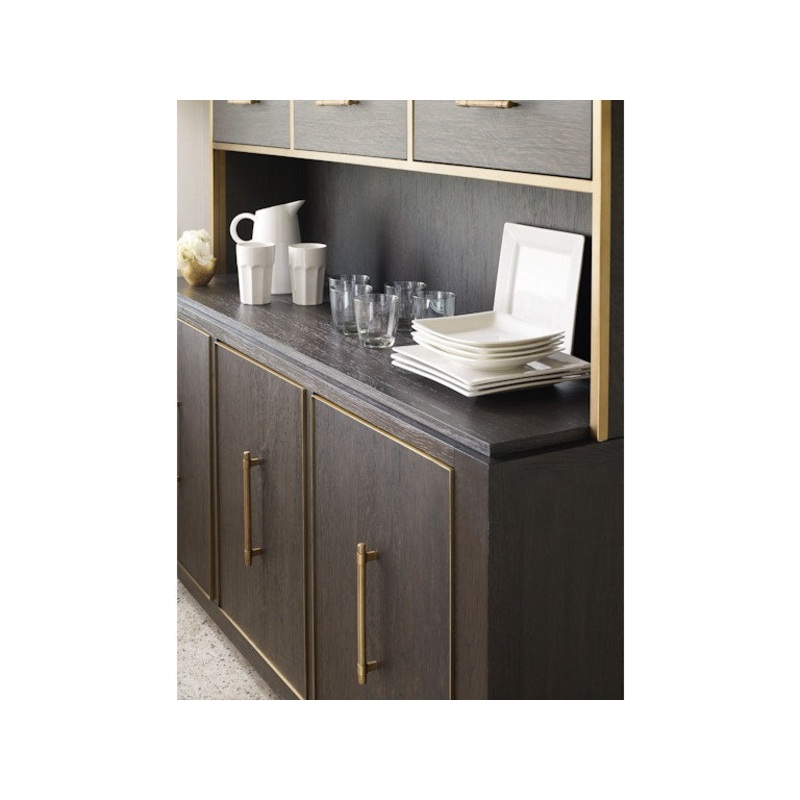Inspired by timeless simple shapes with a chic mixture of tactile materials, the Curata Buffet Credenza is crafted of White Oak Veneers with an earthy Midnight finish accented by vertical brushed brass pulls on each of the 3 doors. There are two adjustable shelves behind each door for roomy storage. Create a curated chic modern look with an eclectic mix of sophisticated materials and finishes in the Curata Collection. Curata, meaning “curated” in Italian, mixes materials like black nickel, stainless brushed brass and marble with three distinct rustic modern finishes for a simple, yet urbane design. Inspired by timeless shapes and chic materials, Curata exudes a “less is more” feel by spotlighting the design of each piece and giving precise attention to detail.