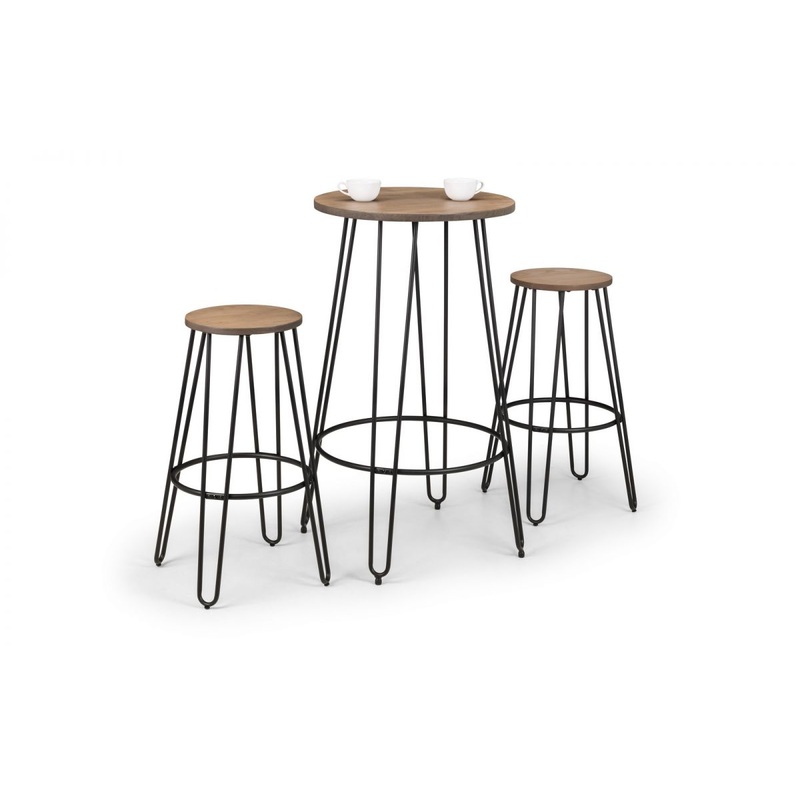 The Dalston Bar Stool features hair pin legs giving a modern, industrial look to any room. Crafted from solid Elm wood and Satin Black powder coated steel, this bar stool offers a durable, sturdy space-saving construction. Pair up with the matching Dalston Round Bar Table for an industrial bar set.