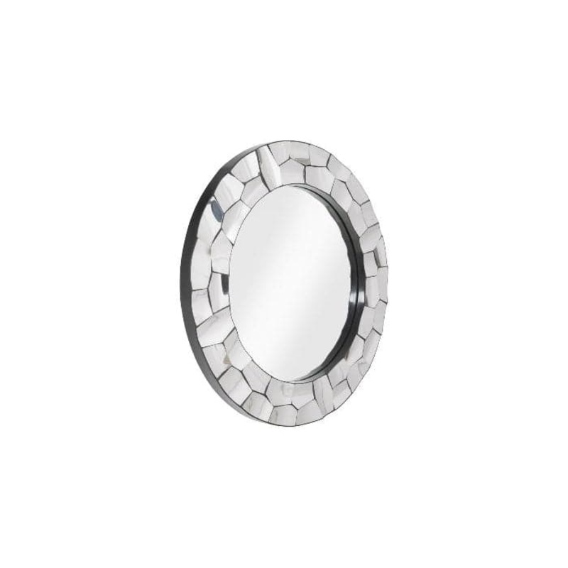 Facets always bring extra liveliness to a design, which is evident in our Crazy Cut Collection of furnishings. Case in point is the Crazy Cut Round Mirror with a segmented surface that will make it a lively element whether you catch a glimpse of yourself on the way out the door in the morning or softened by a candlelight glow in the evening. Made of composite and stainless steel in a brilliant silver finish, this whimsical silver decorative mirror will be the talk of any party. We have a number of furnishings in this series-from a club chair and side tables to a dining table and coffee tables. Each of these pieces reflect the ethos that the Phillips Collection personifies: modern organic.