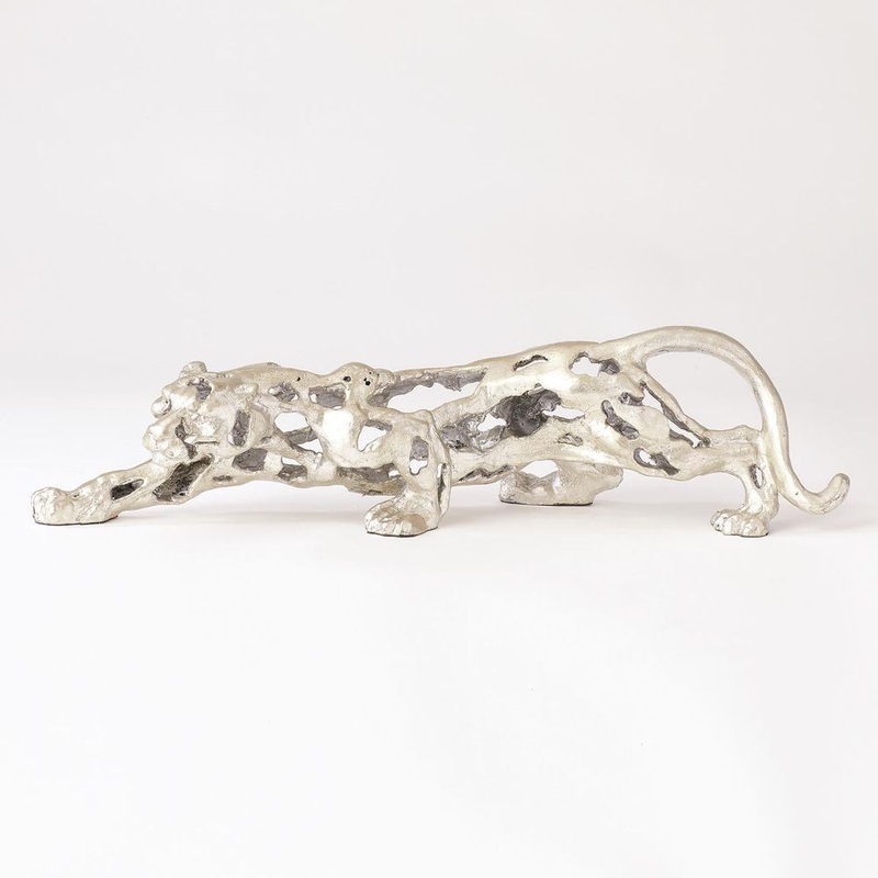 Description: Our regal Jaguar brings a sense of noble calm anywhere you place him. Made of solid cast brass with a silver leaf finish, you cannot deny this feline’s magnificence!