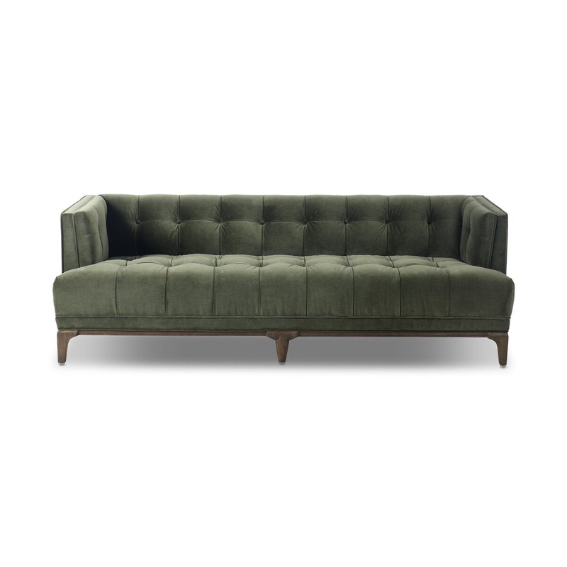 A modernized midcentury silhouette meets the traditional Chesterfield sofa, all in a compact profile perfect for smaller spaces. Available in two different widths and various fabrics.