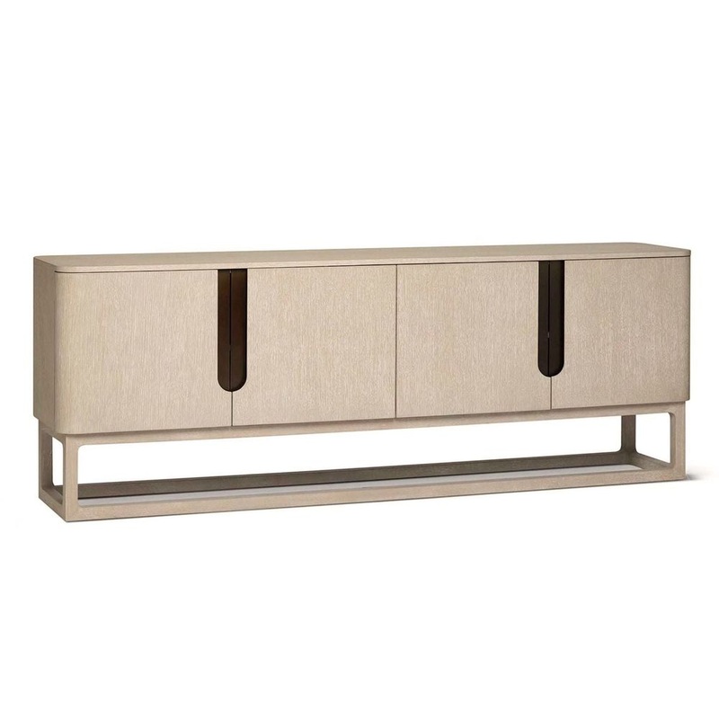 Oak in a fresh Cliffside finish plays off the Classic Bronze aluminum hardware of the strikingly handsome Dixon Credenza.