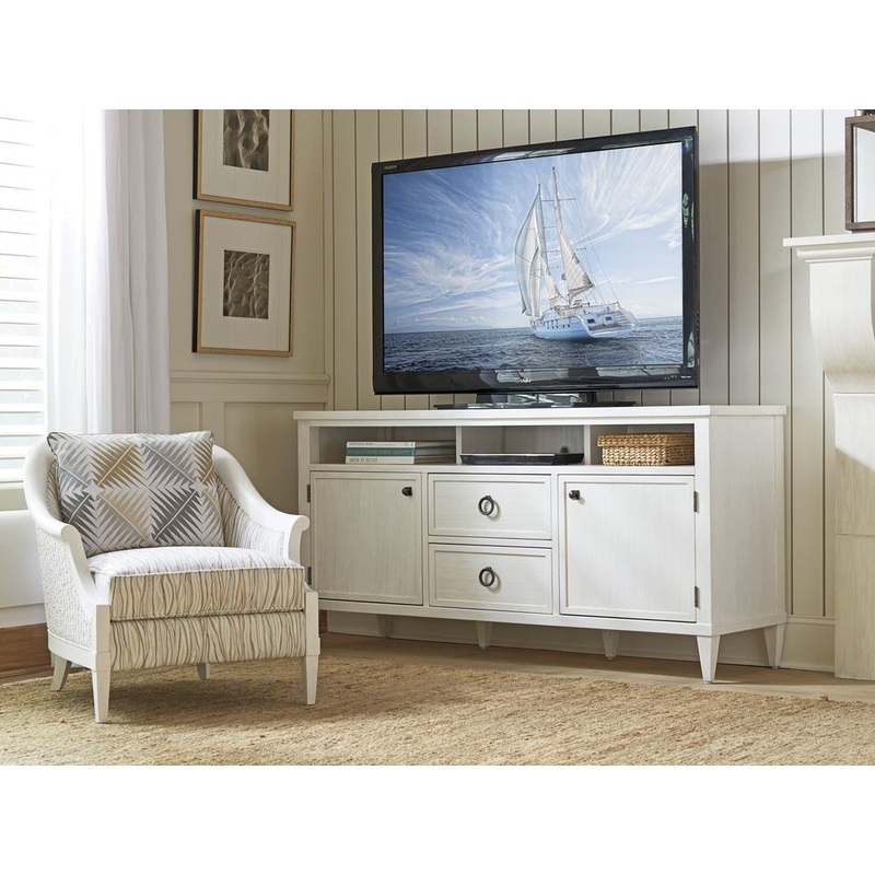 Marketing Copy: Ocean Breeze offers a fresh take on relaxed coastal living with transitional designs crafted from quartered mahogany in a beautiful shell white finish. Natural materials add textural interest and a feel of authenticity to the collection, including leather-wrapped rattan, woven raffia, braided lampakanai and Santa Cruz marble. Custom hardware and metal bases are finished in aged pewter, reinforcing the casual spirit of the designs. Unique upholstery silhouettes incorporate woven materials and intricately carved wooden frames for a sophisticated look that retains the casual essence of the coast. Soothing color palettes include seaglass, citrine, coral, marine blue and crisp white. The Tommy Bahama brand is iconic for its interpretation of casual elegance, and Ocean Breeze offers an inspired interpretation of refined coastal living.