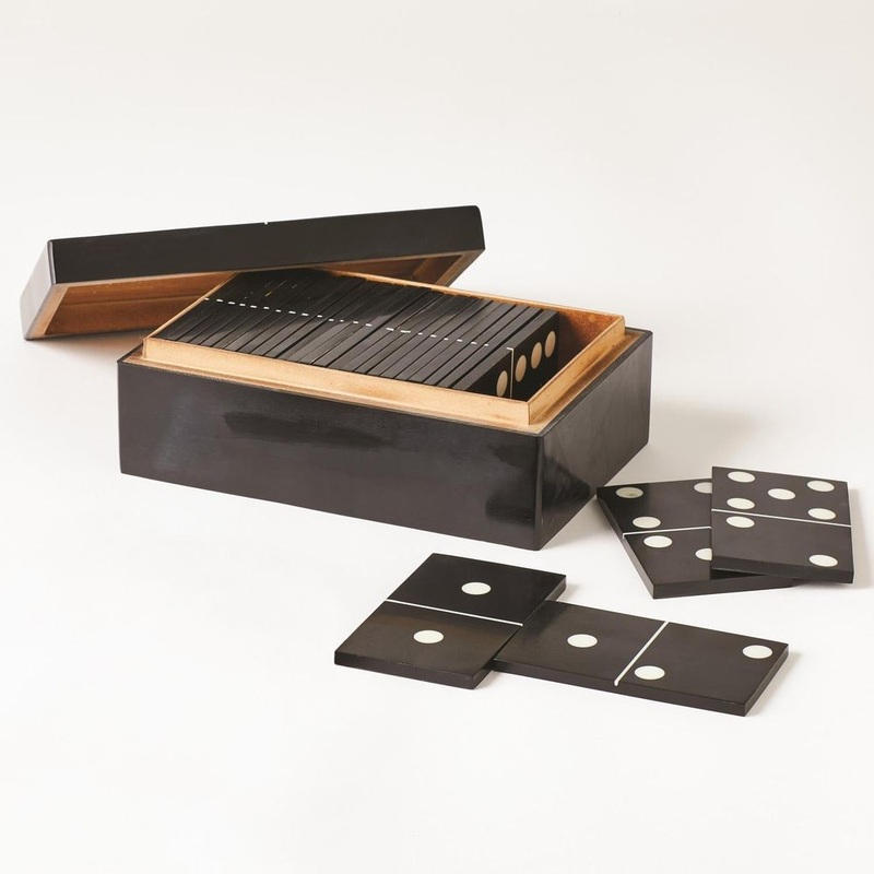 Dominoes Box-Black w/White Dots-Lg