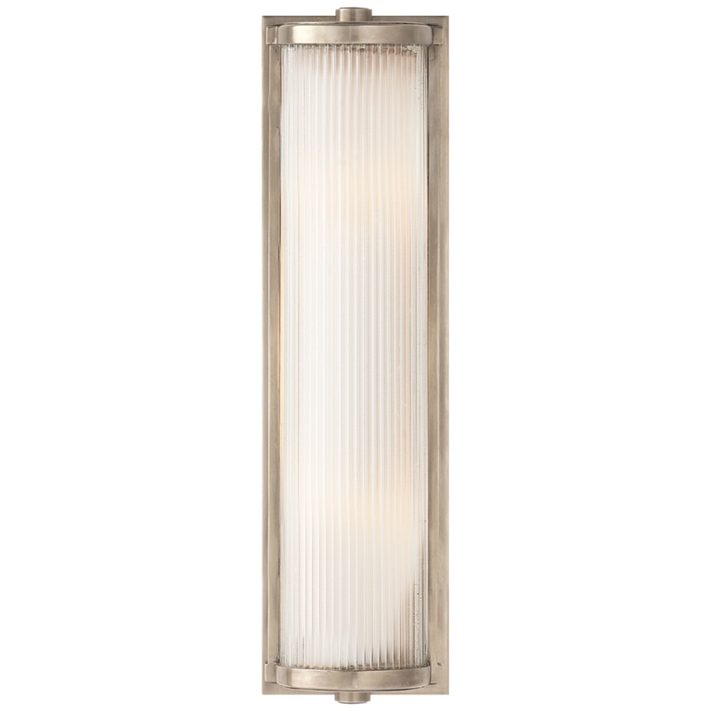 Illuminate any room in style with this Dresser Long Glass Rod Light! Its flutted glass design and brass accents add a touch of elegance to its classic look. The long glass rod ensures that the light is evenly dispersed for a warm, inviting atmosphere. Enjoy the perfect combination of beauty and functionality.