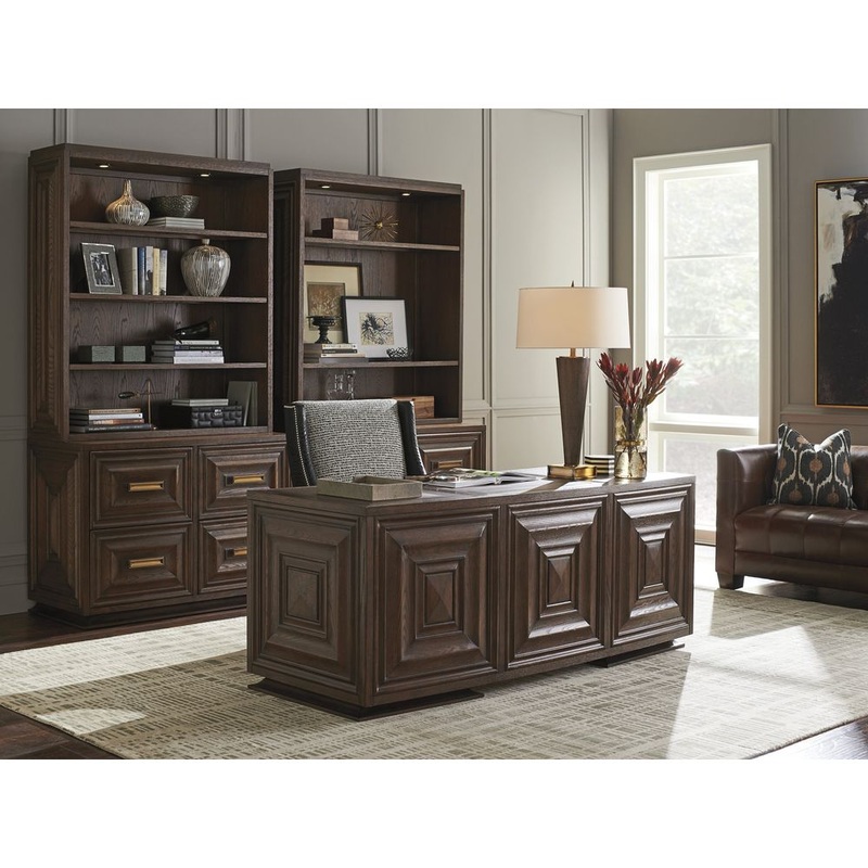 Marketing Copy: Designs in Barrymore find their provenance in classic English antiques from the Jazz Age of the Roaring 20’s. Pieces are crafted in white oak that has been wire-brushed by hand to accentuate grain patterns, and then finished in a rich dark walnut coloration. Silhouettes feature traditional overlay moldings contrasted against Deco-era shaped bases. Custom hardware is finished in antique bronze, offering a an elegant contrast to the wood finish.