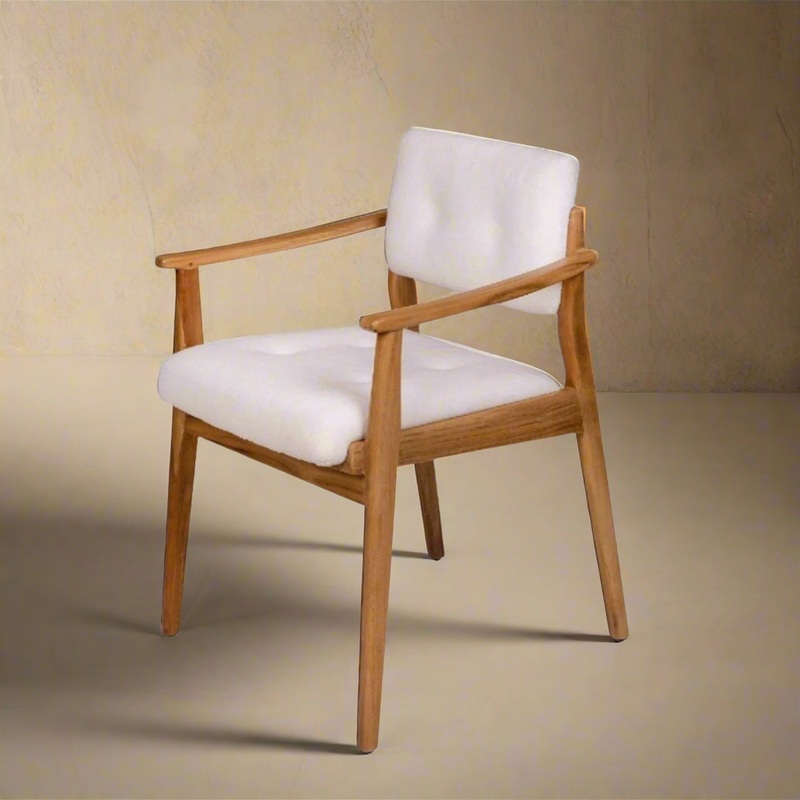 Elevate your home’s decor with the Brooklyn Dining Arm Chair, a harmonious blend of timeless design and contemporary comfort. Crafted with meticulous attention to detail, this chair seamlessly marries the warmth of teak wood with the luxurious softness of sherpa fabric, creating a piece that’s as inviting as it is stylish. The clean lines, gentle curves, and uncomplicated design exude an understated elegance that effortlessly complements a wide range of interior styles. Whether your decor is mid-century modern, minimalist, or eclectic, this chair will seamlessly integrate into your living space.