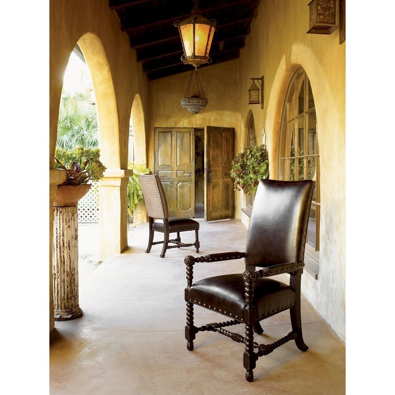 Marketing Copy: The relaxed traditional styling of Kingstown finds its inspiration in classic British Colonial design, with a hint of campaign and a touch of safari. Designs reflect the sense of a well-traveled life, and items hand-selected during journeys around the globe. At first glance, the rich Tamarind finish appears black, but offers glimpses of gold and crimson through its aged finish. Accents include hammered copper, leather-clad silhouettes, and zebra-patterned hair-on-hide. Experience the excitement of discovery with Kingstown from Tommy Bahama Home.