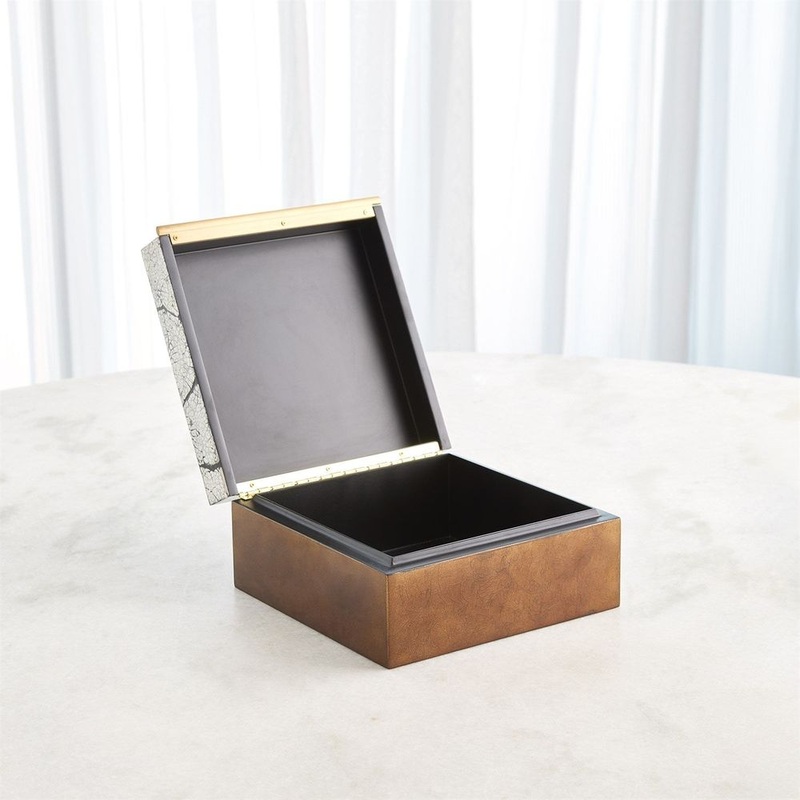 Description: These distinctive boxes and trays showcase crushed and pressed eggshells in captivating designs. Enhanced with an antique gold leaf finish and elegant brass accents, the Eggshell Boxes add a unique touch of artistry to any decor.